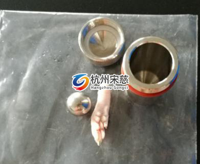 1.要先取1個大鼠的腳板放進到鋼罐里再在其添加配套設(shè)施的研磨珠。2.把含有試品的鋼罐放進到液態(tài)氮中進行冷藏。3.再把鋼罐放進多樣品組織研磨儀設(shè)備的適配器中。4.把研磨設(shè)備的參數(shù)按要求設(shè)置。5.研磨程序結(jié)束后 ,就可以獲得樣本了,如下圖所示。